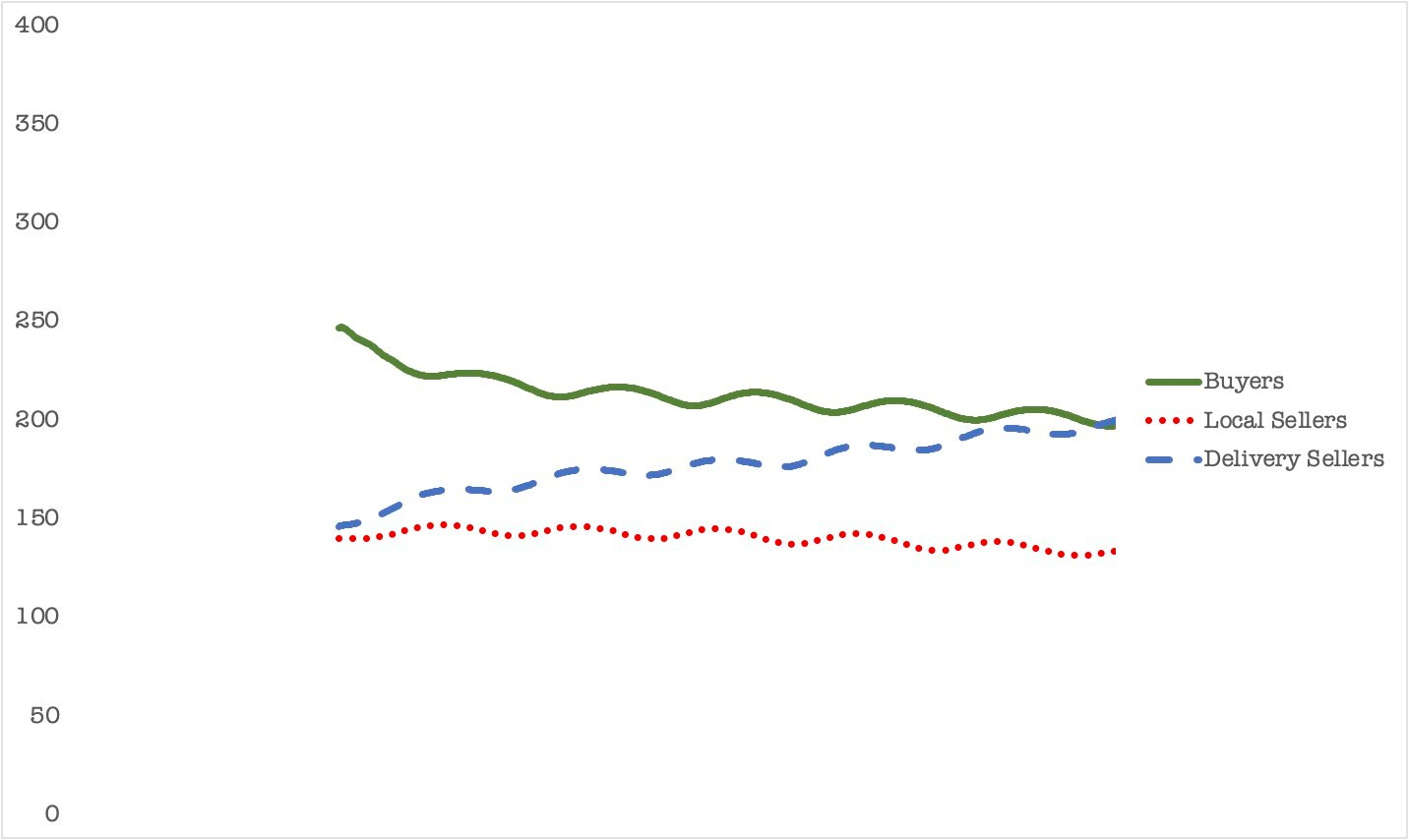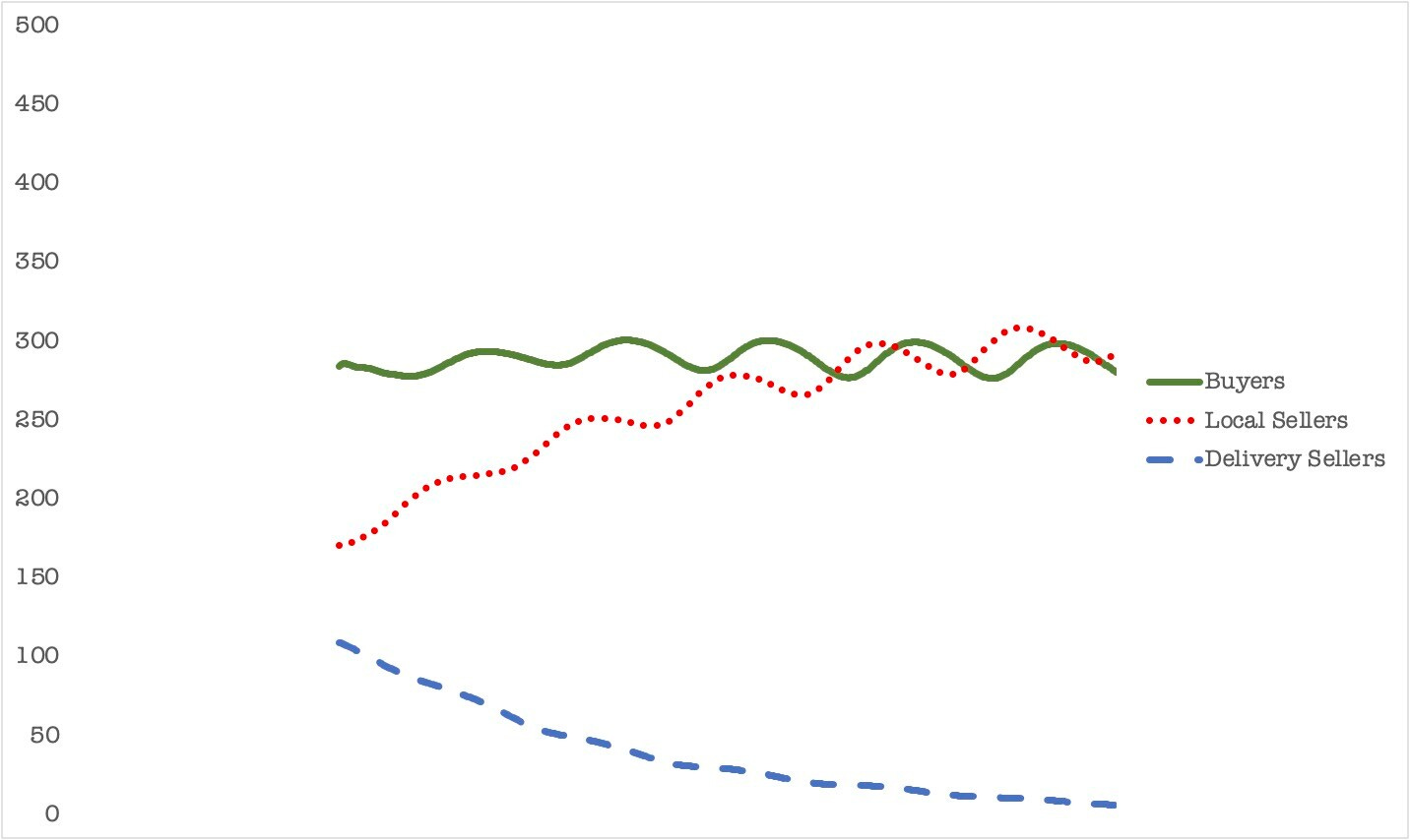 Finally, when being a local seller brings better value than offering delivery, a stable marketplace emerges that is dominated by the local sellers – with the delivery offering dying out over time.